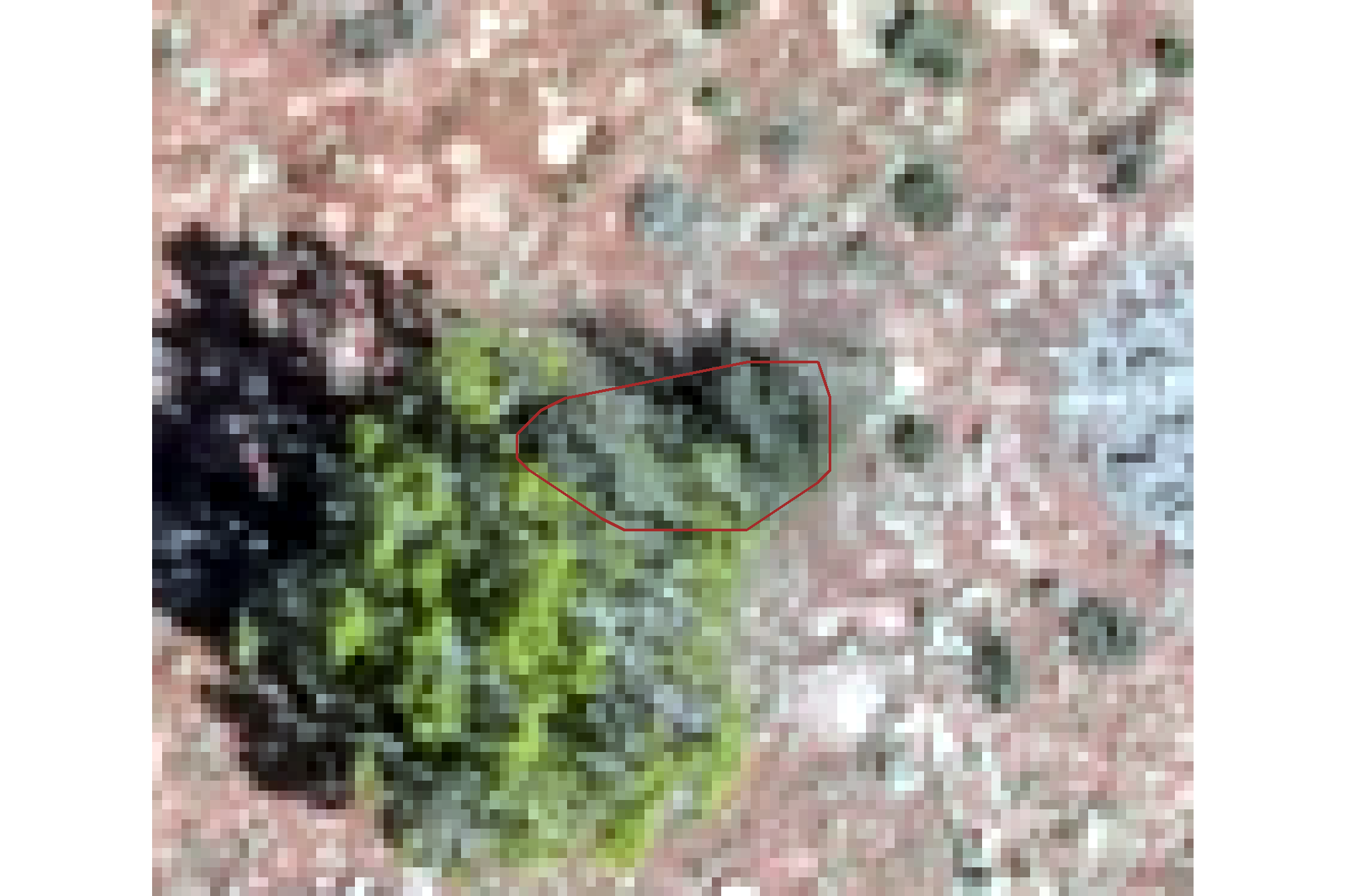 let’s focus in on a specific area to plot the ground truth and the predicted piles overlaid on the RGB