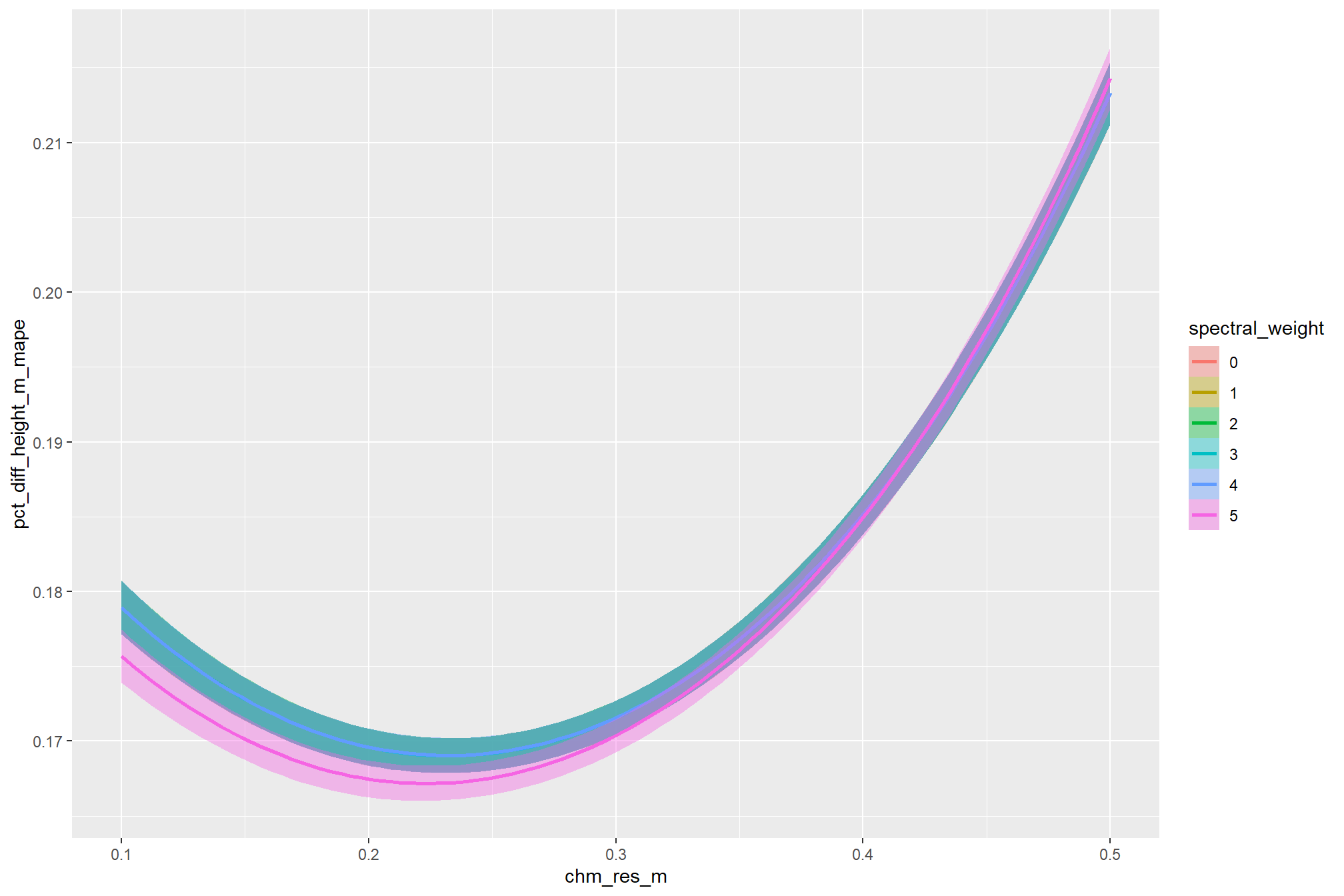 - does the effect of CHM resolution change based on the inclusion of spectral data versus using only structural data?