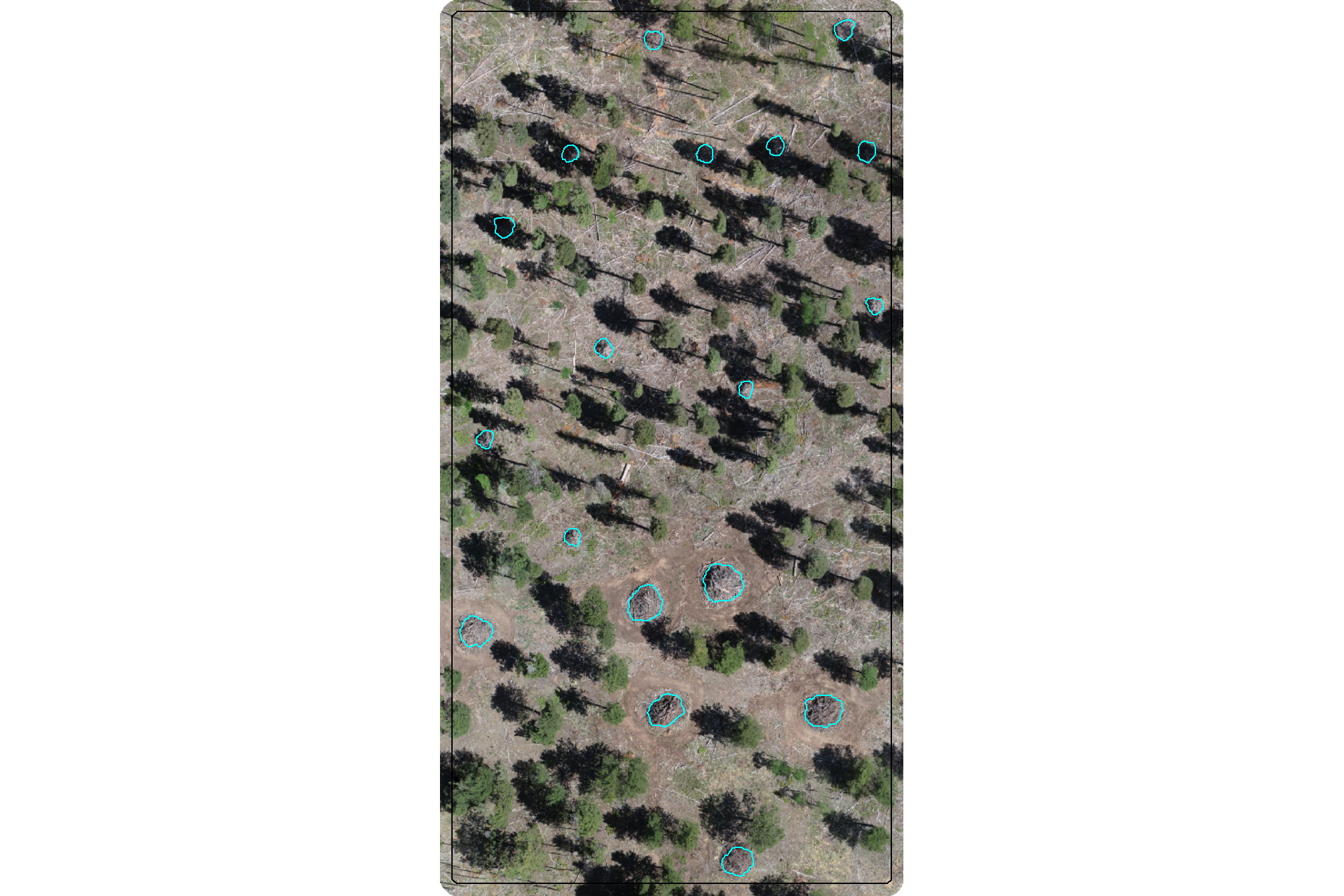 We’ll demonstrate our approach that uses both aerial point cloud-generated CHM data (for structural information) and RGB imagery (for spectral information) which is a data fusion approach. In the prior section, we demonstrated our geometric, rules-based slash pile detection approach. Our data fusion approach identify initial candidate slash piles based on their structural form using this geometric, rules-based method and then integrates the RGB imagery to filter these candidates spectrally. This data fusion methodology leverages the complementary strengths of both data types, using 3D geometry (or “2.5D” as CHM is sometimes referred to) for initial object segmentation and spectral data to refine detections by using thresholds defined to identify green biomass and rock and soil features for exclusion.