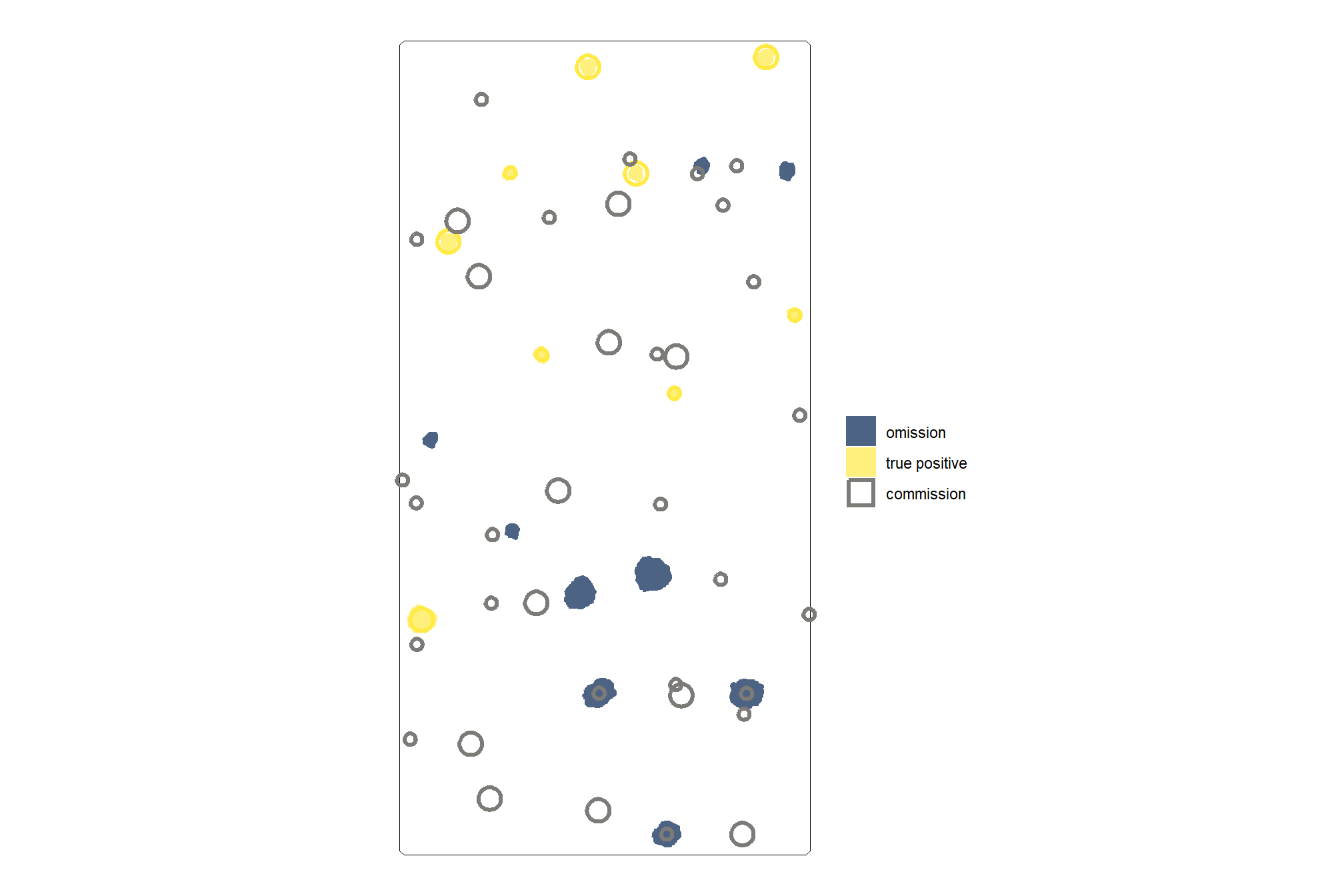 first, let’s look at the agg_ground_truth_match() return using an example minimum required input data frame of the raw instance matches with a column named match_grp which is string/factor with the levels “true positive”, “commission”, and “omission”